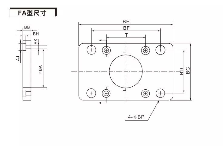Găurile de instalare ale diferitelor cilindri au poziții diferite și trebuie utilizate plăci de flanșă FA. Această placă de flanșă din seria FA poate fi utilizată doar cu cilindri standard din seria SC.