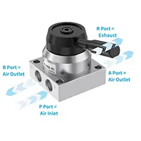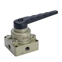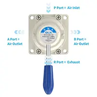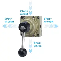 Ouleikai (OLK) HV200A/B Valvele cu două porturi cu două porturi sunt acționate manual, cu comutarea traseului de aer obținută prin rotirea mânerului supapei. Sunt ușor de operat și intuitive, necesitând o alimentare suplimentară de energie. Supapa port HV200B 2/4 are un amortizor încorporat în portul de evacuare de jos.