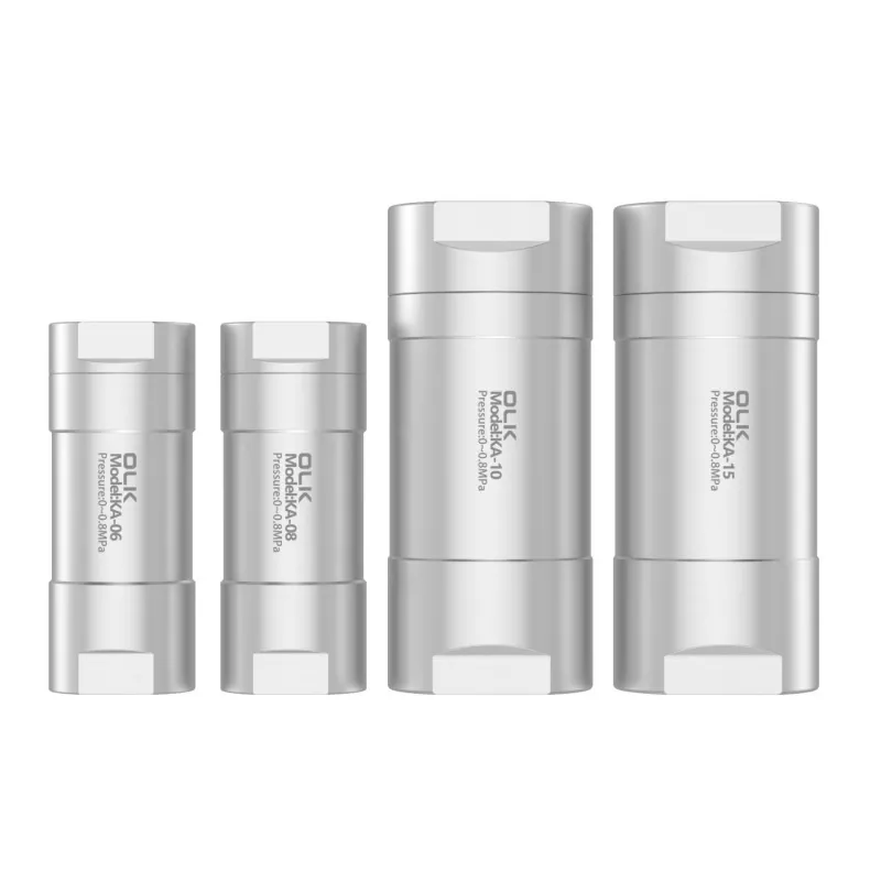 Ouleikai (OLK) KA Supapa de verificare unidirecțională este una dintre componentele de bază ale controlului fluidului. Structura sa este foarte simplă și ușor de utilizat. Funcția sa principală este de a preveni fluxul de fundal al fluidului în sistem și de a menține fluxul de lichid unidirecțional. Acest lucru este foarte util în sistemele de pompe de apă, compresoare de aer, sisteme de conducte și sisteme de gaze pentru a preveni probleme precum fluxul de spate al pompei de apă, refluxul de ulei, canalizarea și fluxul de apă uzată etc.