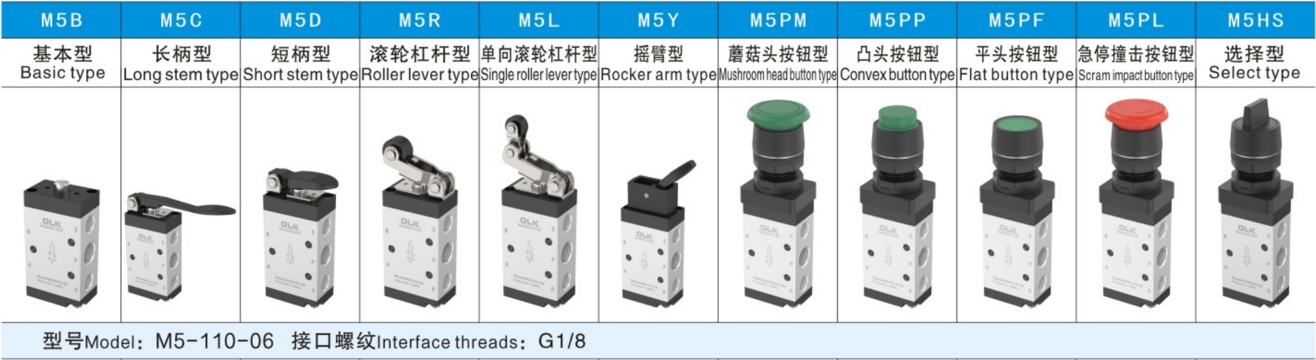 3. M5C, M5D, M5Y, M5PF, M5PM, M5PP, M5PL, M5HS Seria sunt operate manual cu diverse capete de control structural pentru comoditate în diferite condiții.
