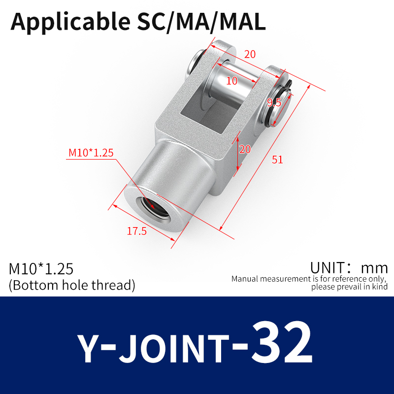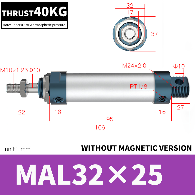 Cilindru de aer PNEUMATIC 32 mm, cursă, 25 mm, dublă acțiune, cu conector Y și 2 bucăți racord PC de 6 mm MAL32x25