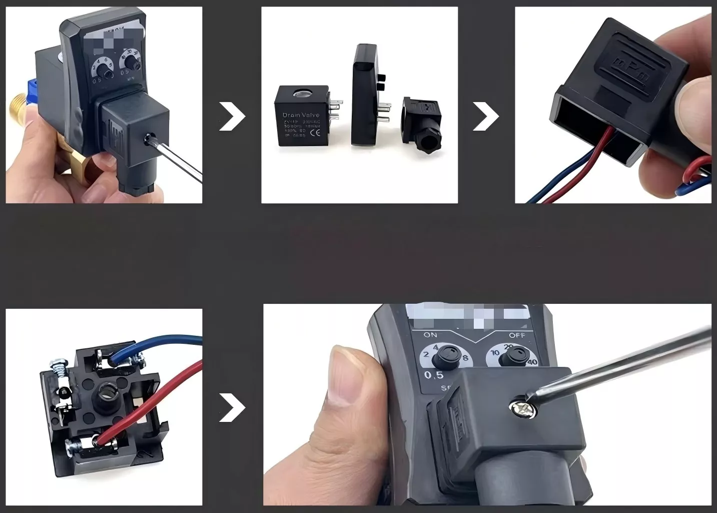 OLK OPT-B Electronic Timer Auto Drain acceptă atât controlul electric, cât și oprirea manuală ca protecție dublă; un întrerupător manual extern de închidere este rezervat pe corpul supapei pentru a preveni curgerea în timpul căderii de curent. Intrarea este situată pe partea opusă bobinei, portul din mijloc fără filete este ieșirea de scurgere, iar portul final este ieșirea.