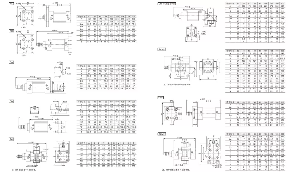 5. Cilindrii și accesoriile pentru instalare cu mai multe specificații sunt opționale.