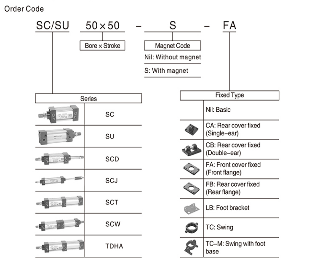 6. Accesoriile de montare a cilindrilor sunt interschimbabile cu cilindrii din seria SC.
