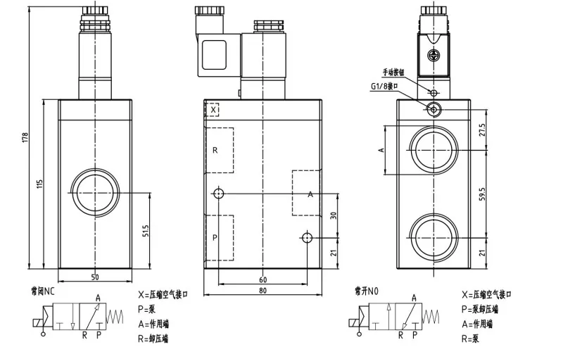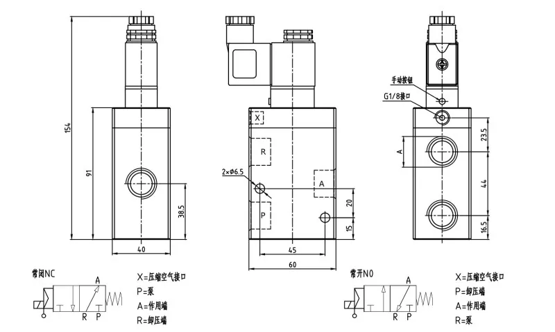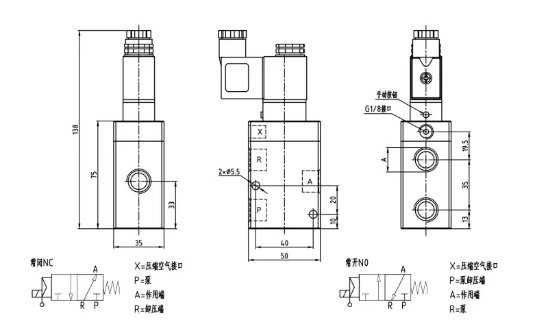 VU07 VALVE SOLENOID VALVE VALVE 3 Căi Simbol